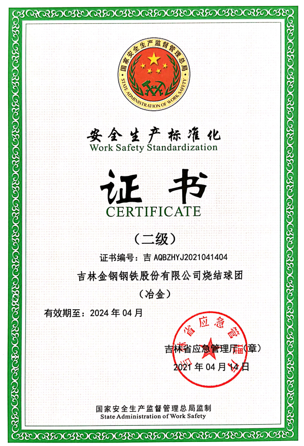 安全生產標準化證書(二級)