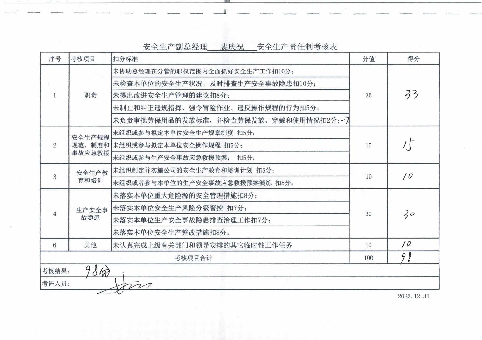 2022年主要負(fù)責(zé)人安全生產(chǎn)責(zé)任制考核公示
